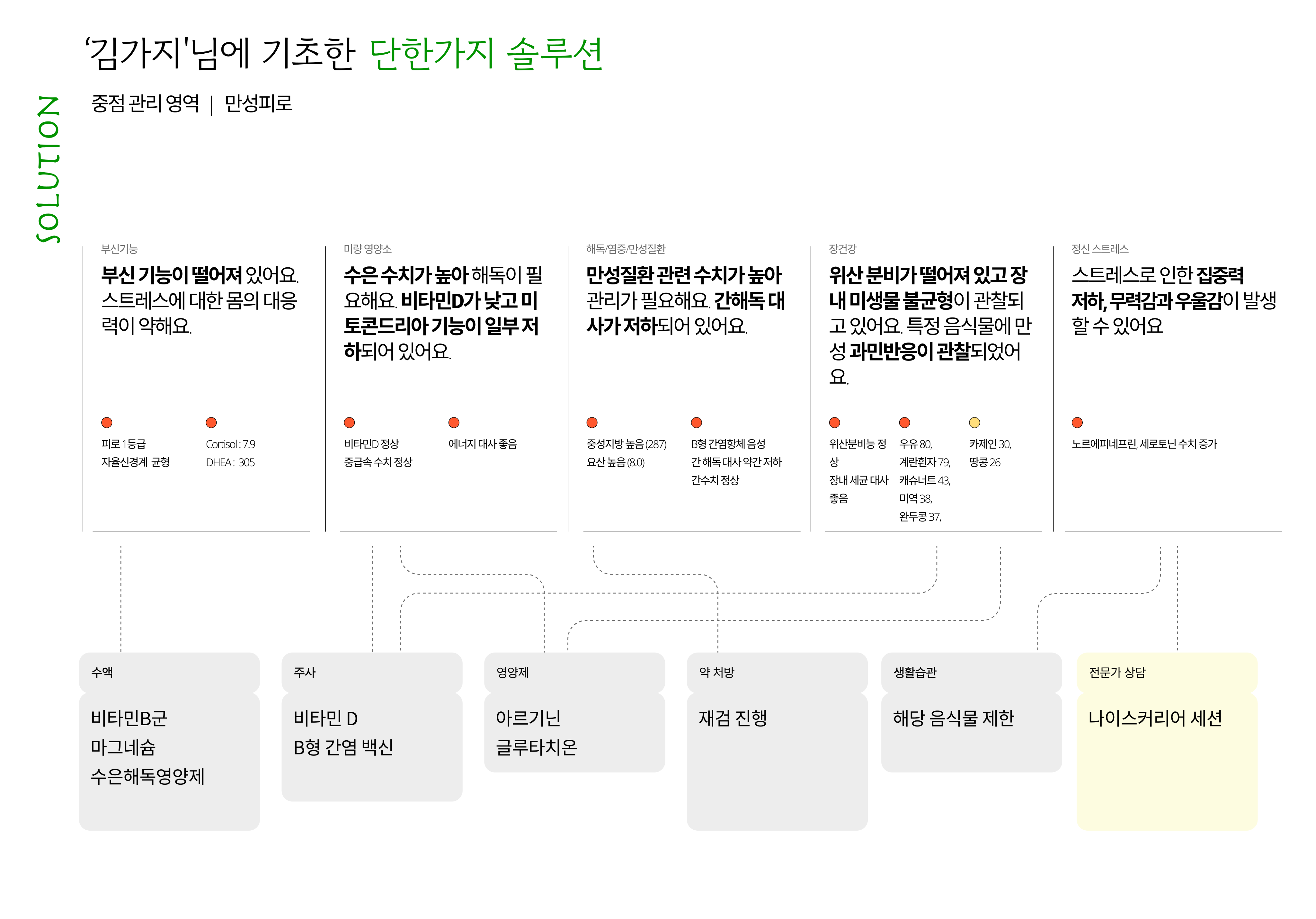 νΉν κ²μ§ κ²°κ³Όμ μλ΄ λ΄μ©μ κΈ°λ°μΌλ‘ μΌμ μ§μ¬μΈ λΉμ μ΄ λ 건κ°νκ² μΌν μ μλ λ§μΆ€ν μ루μ μ μ 곡ν΄λ립λλ€.